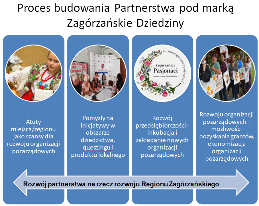 Proces ten został zainicjowany przez Gminę Mszana Dolna, która podjęła stałą współpracę z Fundacją Miejsc i Ludzi Aktywnych w ramach MOWES – Subregion Sądecki. Seria spotkań, konsultacji i warsztatów dotyczących lokalnych potrzeb, oczekiwań i potencjału lokalnej społeczności oraz zagórzańskiego dziedzictwa – dały początek marce Zagórzańskie Dziedziny. Wokół